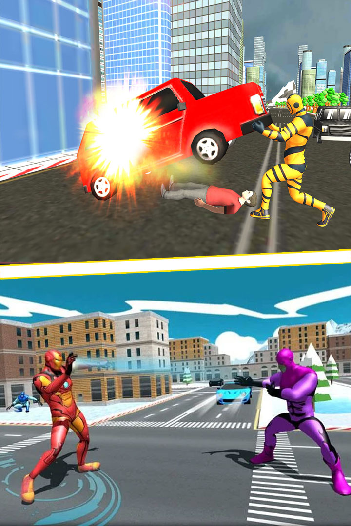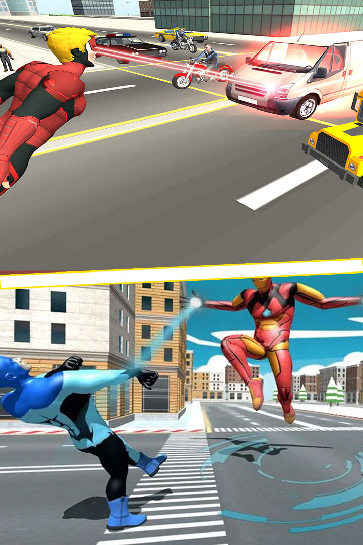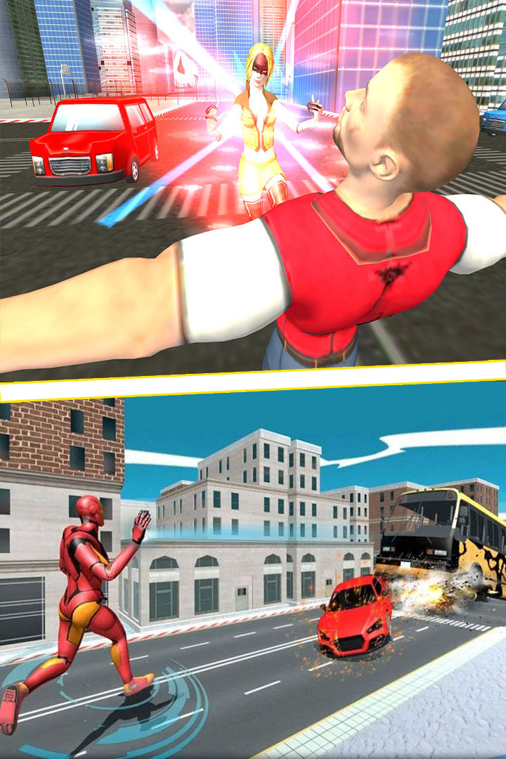 游戏中,你是超能飞行队的一名超级英雄,犹如钢铁侠超人蜘蛛侠一样,公民需要你。你将营救平民免遭危险, 打击黑帮和黑手党。帮助拥挤城市的警察维持城市的安宁, 击败歹徒。使用你的激光眼射击敌人, 并告诉他们邪不胜正;使用你的飞行技能更快地到达的地方, 及时拯救人民伙伴们,保护他们,成为他们的奇迹, 冲向敌人, 并及时把他们逮捕, 维护世界和平。记住不要伤害平民,所以, 要坚强, 追捕罪犯, 救人!