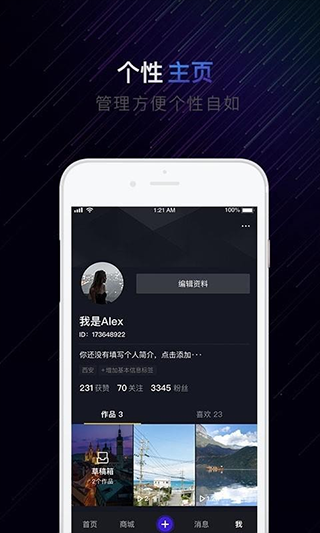 3、这个版本主打浏览视频和创作视频,同事提供用户之间的关注等功能。