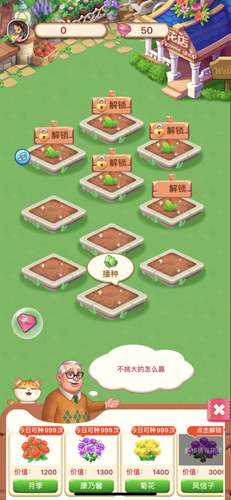 1、选择您自己的种植方针,出售鲜花,赚钱解锁更多土地。