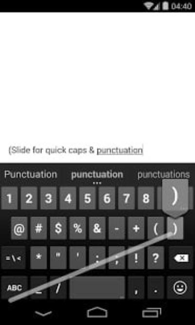 - 可自动填补空格的滑行输入模式(输入时不必移开手指,只需滑过空格键即可)