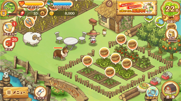 游戏中你可以使用各种不同的植物种子在田园里面进行种植来完成丰富的植物收割,你可以利用这些植物来换取不同的资源,你可以在田园里面建造自己的牧场,在牧场养殖各种不同的家畜,不管是鸡、羊、牛都是可以
