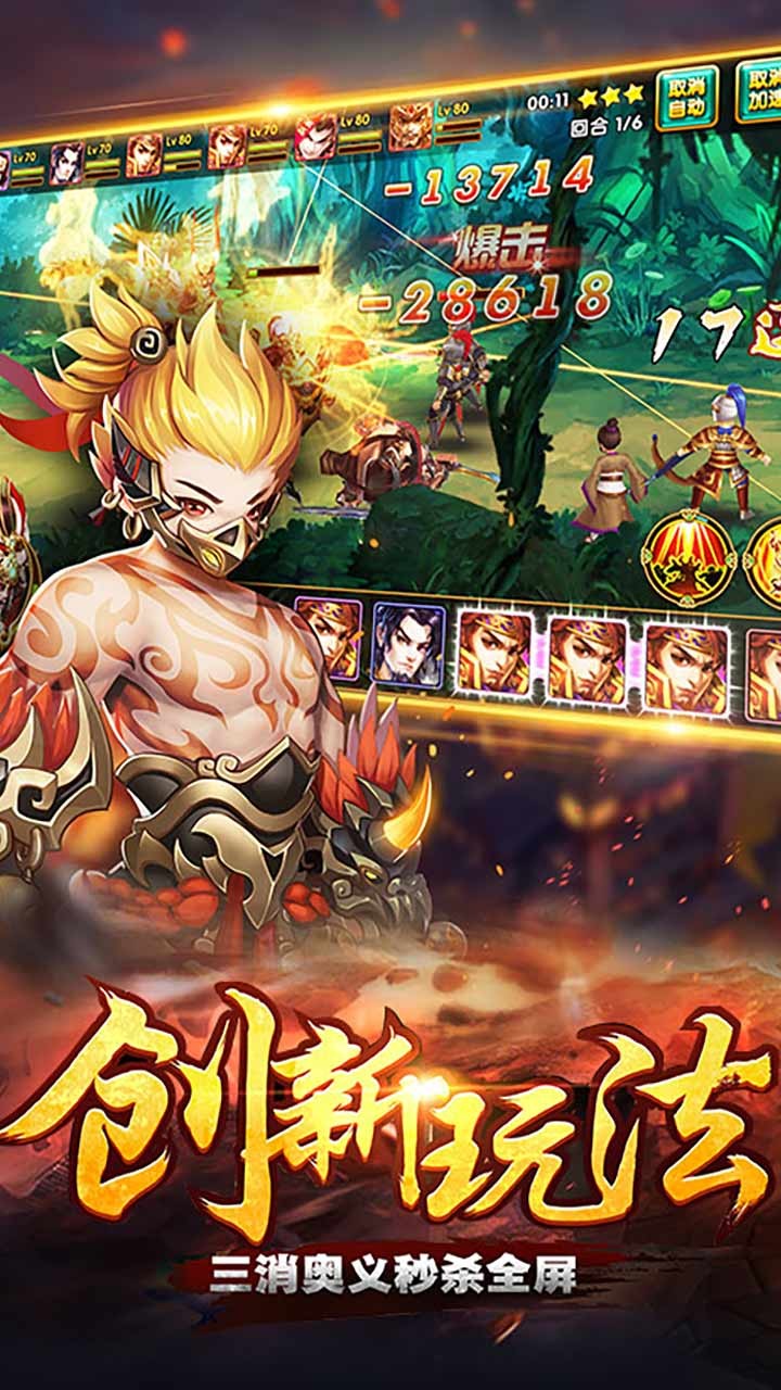 2、火神祝融,斗战圣佛孙悟空,天眼杨戬,剑客宫本武藏,玉女心经小龙女……群英荟萃,各路英雄豪杰任你搭配,打造属于你的最强阵容