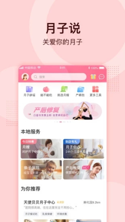 月子说致力于解决女性产后恢复的身心问题,为妈妈们提供专业的信息知识及本地化服务,我们专注于妈妈们的各种需求,以妈妈为圆心,让妈妈从孕前孕后,不用担心坐月子的各种问题,不用担心产后身材、心理等各种产后修复问题,以月嫂、月子中心、产后修复、保险等多类型的本地化服务,让每个阶段的妈妈们都能感受到精心呵护;以专业的百科知识、月子食谱等,让妈妈更好的了解自己;以圈子交流交友,让宝妈宝爸们一起分享,热门话题随时随地随心聊。