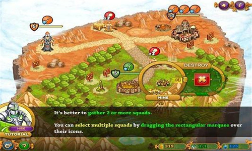 战斗开始后,玩家点击主基地,选择雇佣兵种派兵,点击兵种头部图标,选择攻击目的地,成功派兵攻击;