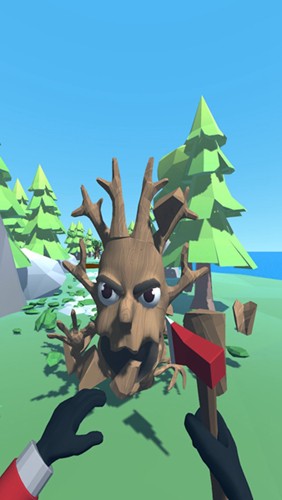 游戏内画风非常的搞怪,一个矮人一样的树妖一双大眼睛很多手来攻击你,游戏内玩家需要操作斧头攻击他,攻击致命弱点可以提高伤害,击杀越快奖励越丰富,大家快来一起砍树吧