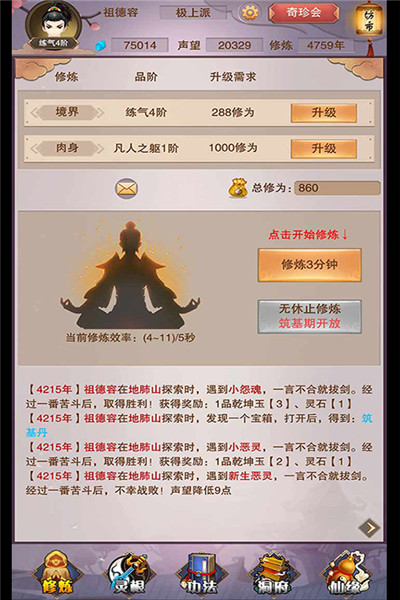8、 关于肉身:建议初期先修境界,境界高了修为涨得越快,据说下个版本肉身加成的防御和血量比较高。