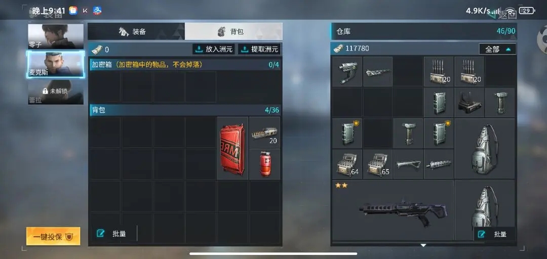 身上穿的装备全部都要投保,不然如果你死亡,至少亏大发,死一次装备全爆,绝对亏到哭。