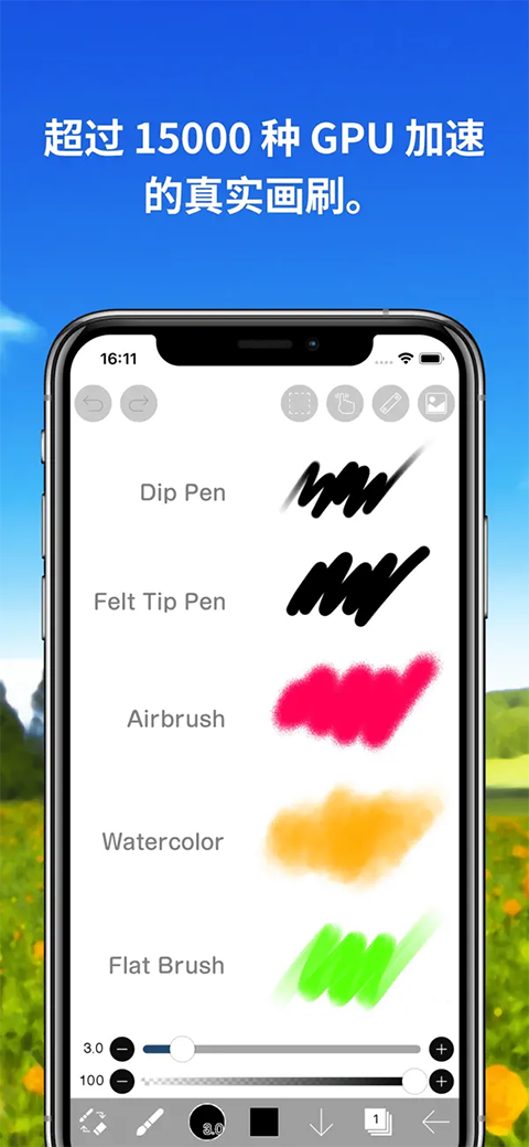 软件操作也很简单,小白也可以很快学会,让它玩起来更方便,使用起来更顺畅。它支持121个笔刷,46个屏幕色调和37个过滤器