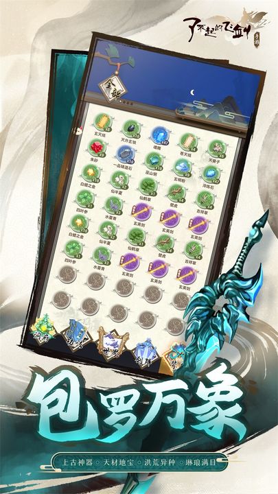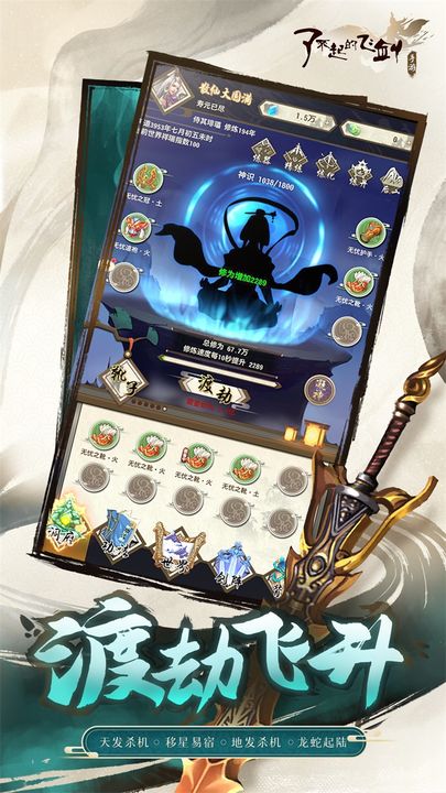 (2)飞剑养成:收集飞剑材料,合成高品质飞剑;强化飞剑,提高飞剑属性;培养飞剑灵性,解锁飞剑技能。