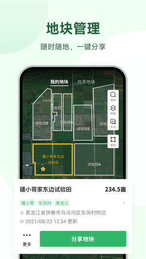 地块可以分享给任何平台用户,只需在地块详情页点击分享地块即可。