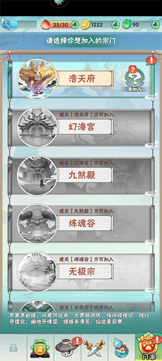 4、如果你觉得游戏太过单调的话还能加入别的宗门增添游戏乐趣哦