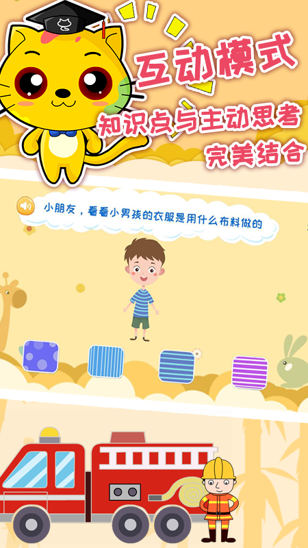 通过迷宫游戏、数字游戏、色彩拼图、儿童画画、找茬、问答游戏、连线游戏、捉迷藏、分类游戏等多种多样的游戏模式,全方位的培养孩子动手动脑能力,互动想一想环节引导孩子学习而思考对所学知识的实际运用。