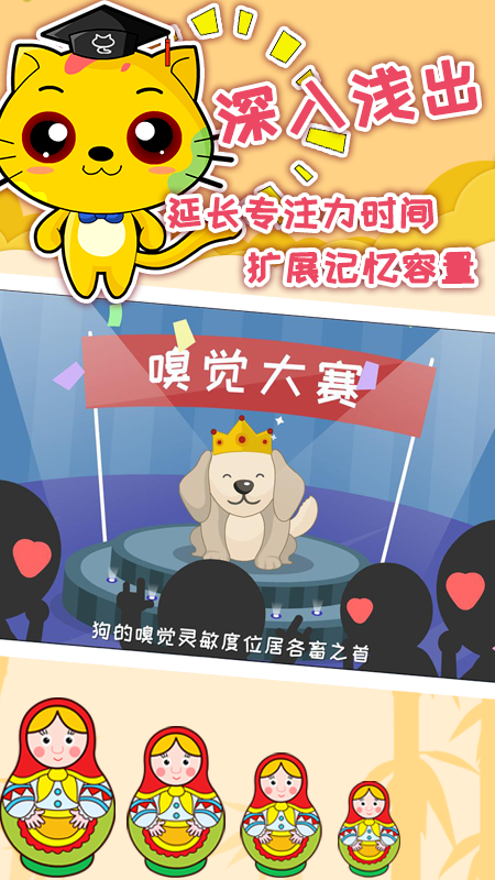 幼儿寓言故事、成语故事、童话故事、绘本故事、历史故事、民俗故事、百科知识等丰富的故事引导,由浅入深逐步培养孩子色彩认知力、空间感知力、推理能力、手脑协调能力、识字能力。
