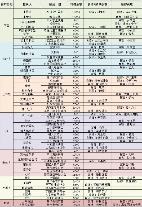 经营计划中前缀为食谱的是仅仅获得食谱,前缀为菜单的是会获得可以直接上架以及制作后续菜谱的料理。
