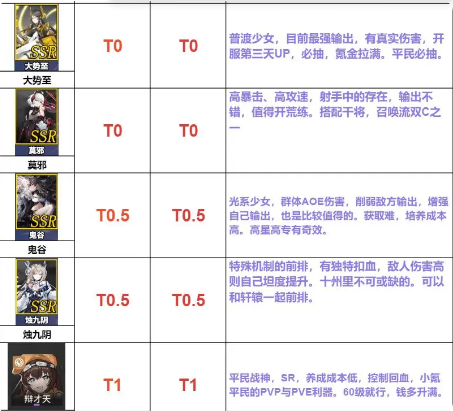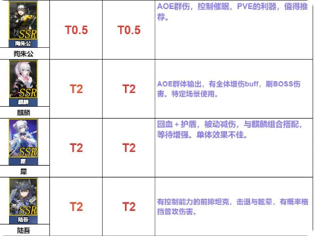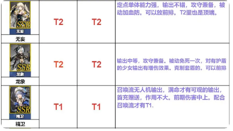 T2(S):前期开荒好,后期二三星后与其他SSR差距过大。