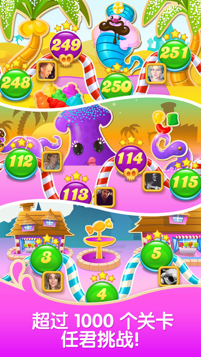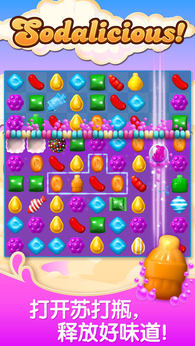 《糖果苏打传奇》糖果粉碎传奇的续作,游戏在各方面都有所提升。它带来了全新的糖果,新的组合以及富有挑战的游戏模式,以及苏打水!