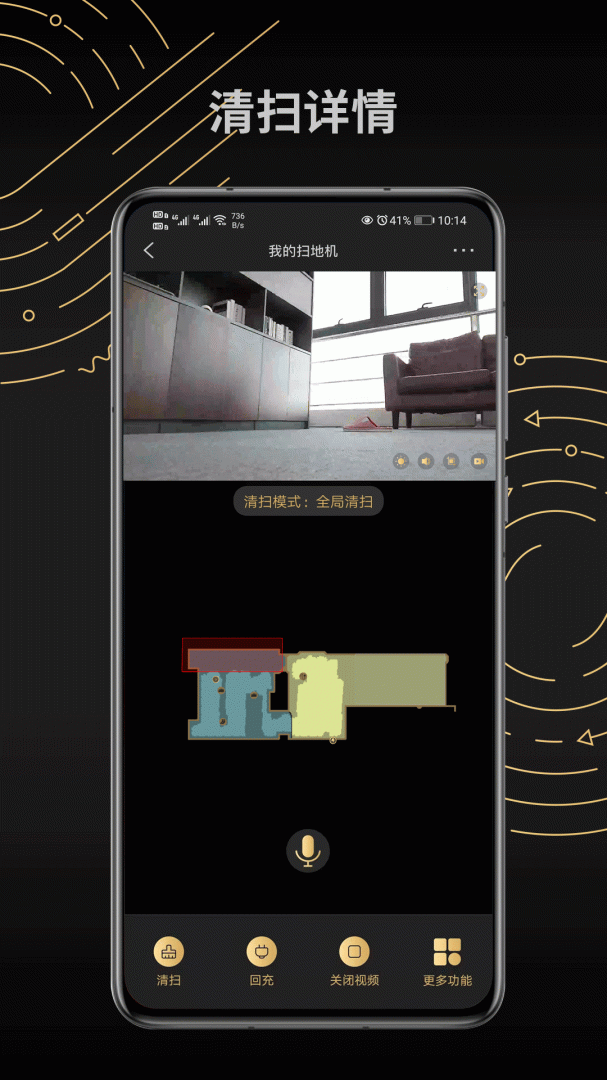 1、包括清扫时间,清扫面积,清扫地图,电池电量等