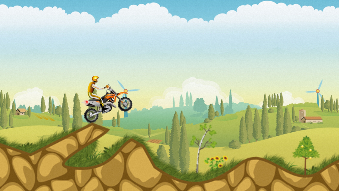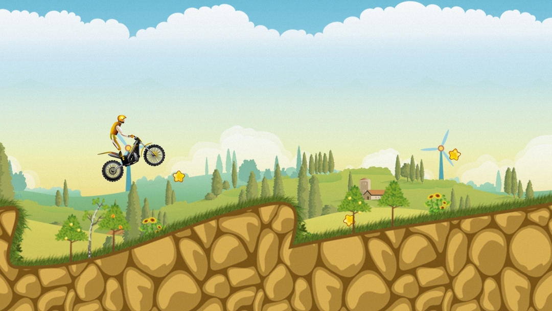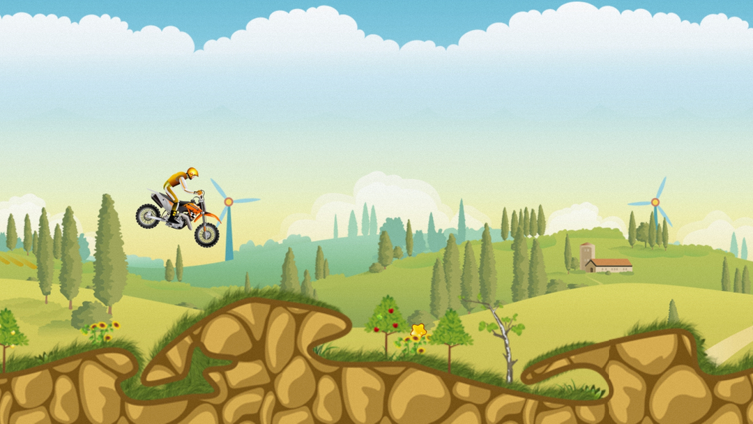 3、操作简单,按屏幕右边加速,左边减速,倾斜设备控制摩托车的翻转