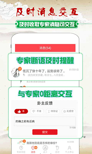 4、独有的消息交互系统,让用户可以与每一位大师进行零距离的1对1交流,达到更好预测效果