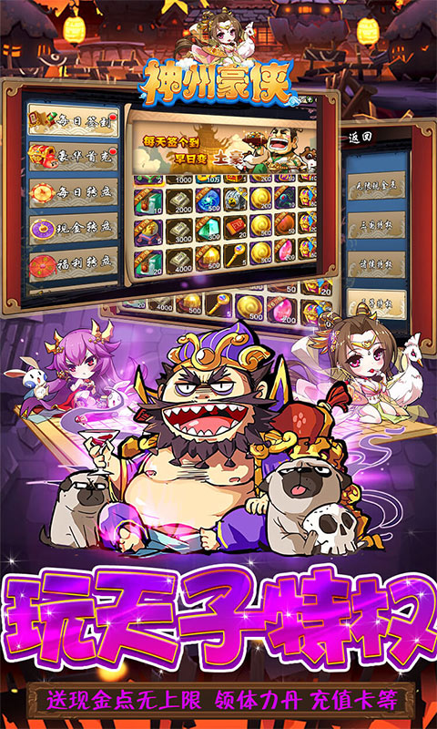 带来的是神州豪侠(免付现金点刷充)本下载,整个游戏玩起来还是非常不错的,体验全新的回合制三国竞技带来的无限刺激,各种好玩的竞技场玩法自由,你可以培养自己的武将士兵,打造更强的战队,策略攻城,一统三国