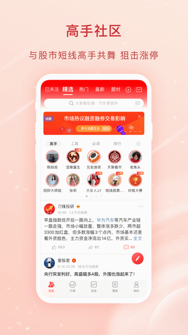 他们通过直播、图片或是文字的方法,解读最新的重大财经新闻或是分享自己的投资心得,形成一个交流、讨论股票心得体会的软件。让每一个用户都能在汹涌澎湃的股海中无往不利