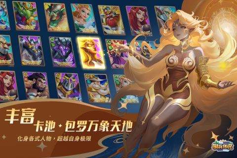 3、众多形态各异的英雄等待你的招募和培养!去酒馆看看你会和哪些强力英雄来一场奇遇。在这里,精而简的英雄卡池不会让你有冗余的烦恼。每一位英雄都有自己独特的技能,也拥有独特的阵营、种族、职业特质。运筹帷幄,在培育英雄的同时,善用装备和宝物,结合阵营制衡和羁绊搭配,即可打造出属于你的最强阵容