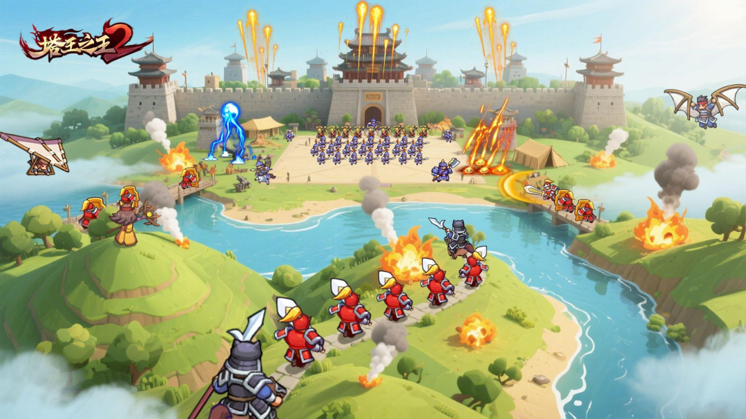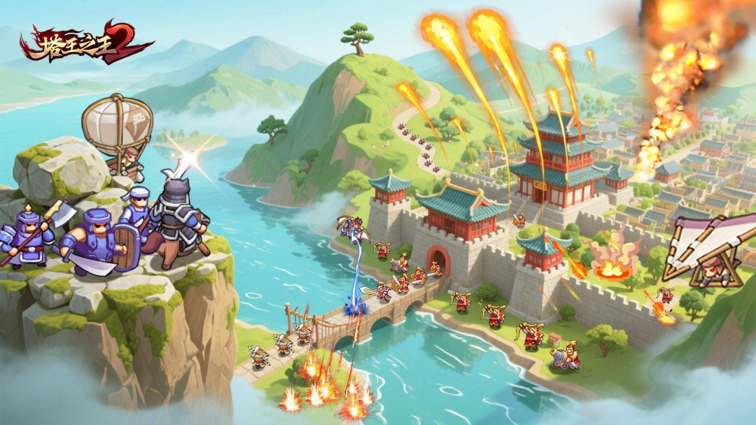精美三国游戏场景画面,融入了全新的三国剧情故事,精彩的塔防策略战斗玩法,在塔王之王2九游版中,玩家将化身主公,策略组队,排兵布阵,享受精彩的三国争霸体验