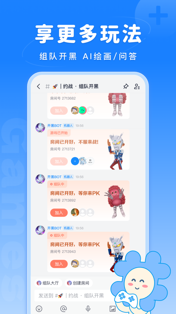 你可以讨论很多你想要了解和知道的游戏话题,不管是发送文字,还是发语音和图片都是可以快速得到更多人回应的,让你们对游戏有个欢乐有趣的氛围