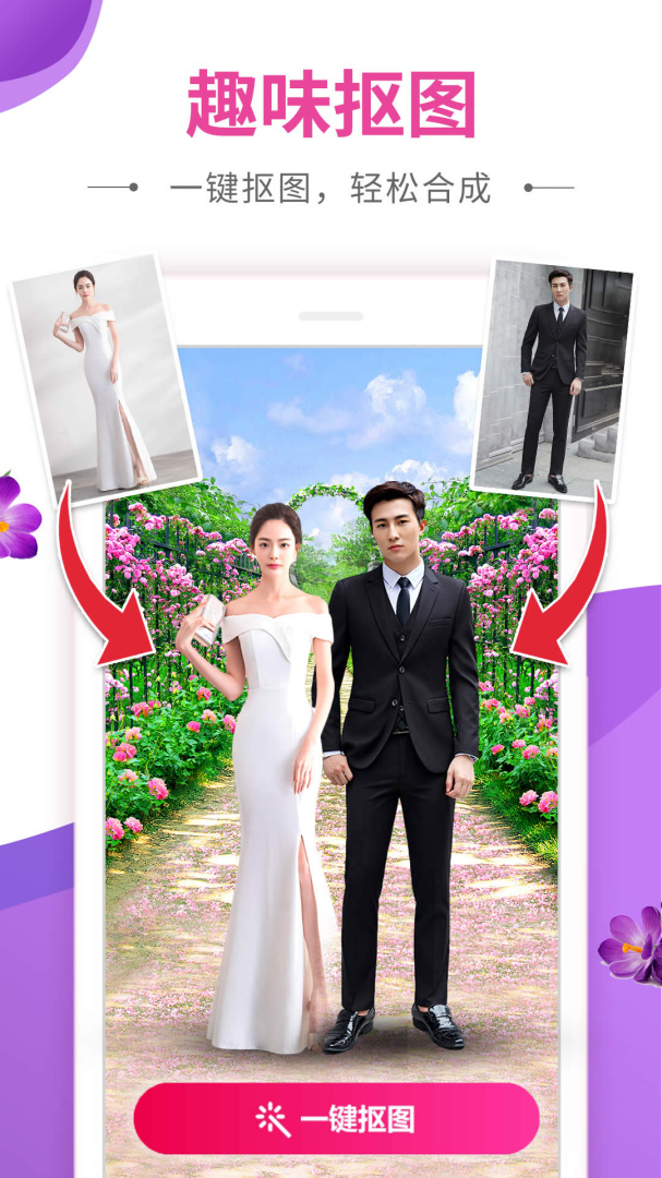 海量模板每天更新,唯美、搞怪、时尚、风景丰富多彩,驾车骑马、划船戏水、飞奔云霄,跟神话里的人物互动、和喜欢的明星合照、到世界各地留影。搭配一键抠图、抠脸把照片完美
