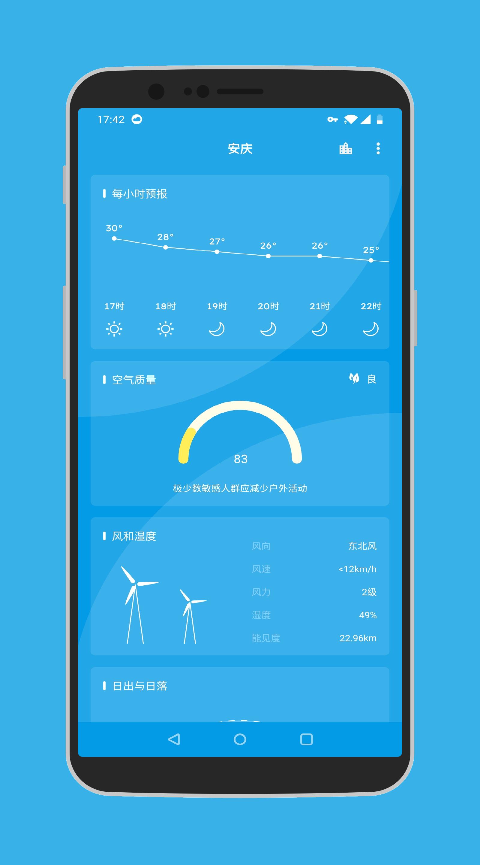 5、支持预警、小时预报、桌面插件、通知栏、多城市、天气分享&提醒