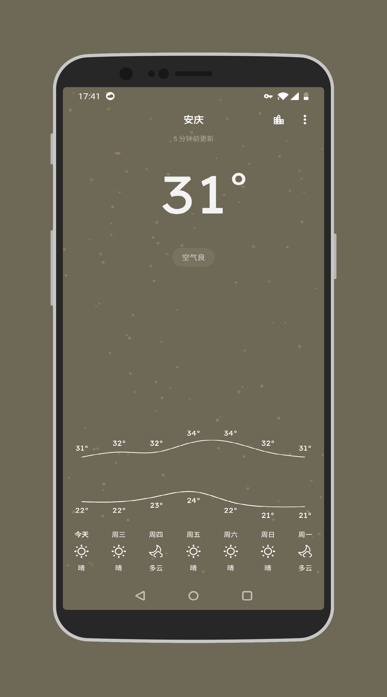 4、Pure天气是一款轻量的天气软件,界面简洁清爽,支持天气预警和空气质量的显示