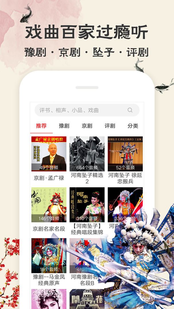 3、汇集全国各地不同戏曲剧种,提供豫剧戏曲大全、河南戏曲豫剧大全、河南曲剧、河南越调、戏曲视频、河南梨园春、河南坠子、戏曲名家唱段、京剧名段欣赏等