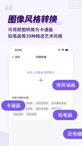 该软件主打Ai智能绘图,用户只需要输入文字描述就可以获得自己需要的图画出来,并且还能在这里进行logo的设计,以及支持将自己的照片转换成二次元动漫形象,还为用户提供了图片美化、增强功能,老照片的修复等多种实用的图片处理功能,很好的满足用户编辑图片的需求