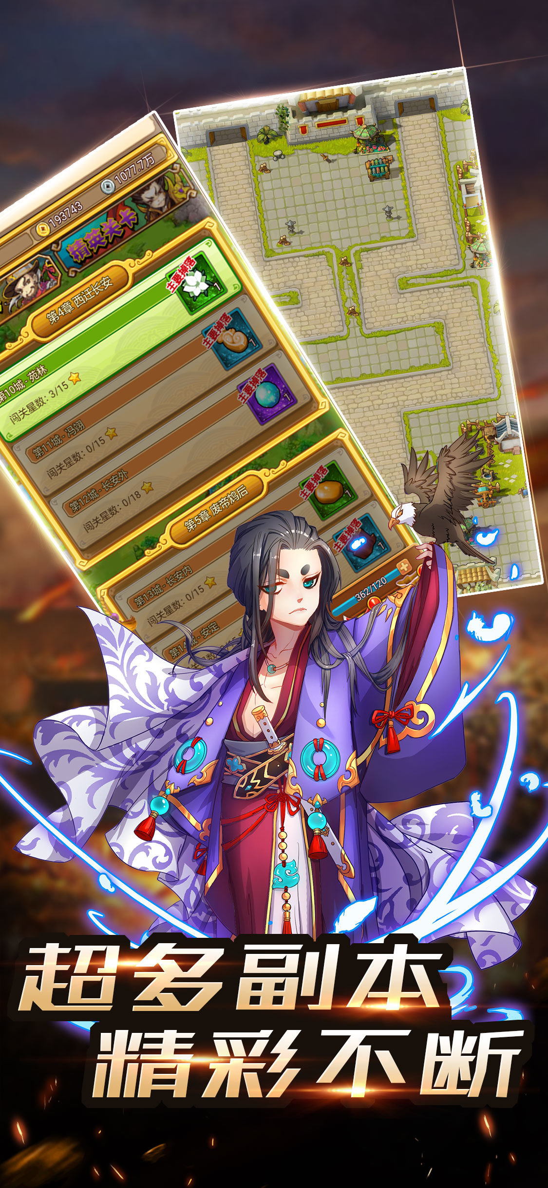游戏中玩家以闯关模式,不断挑战,获取胜利玩家还能收集大量英雄,帮助英雄进阶还能增强玩家的团战的实力哦,三国征战一起来吧