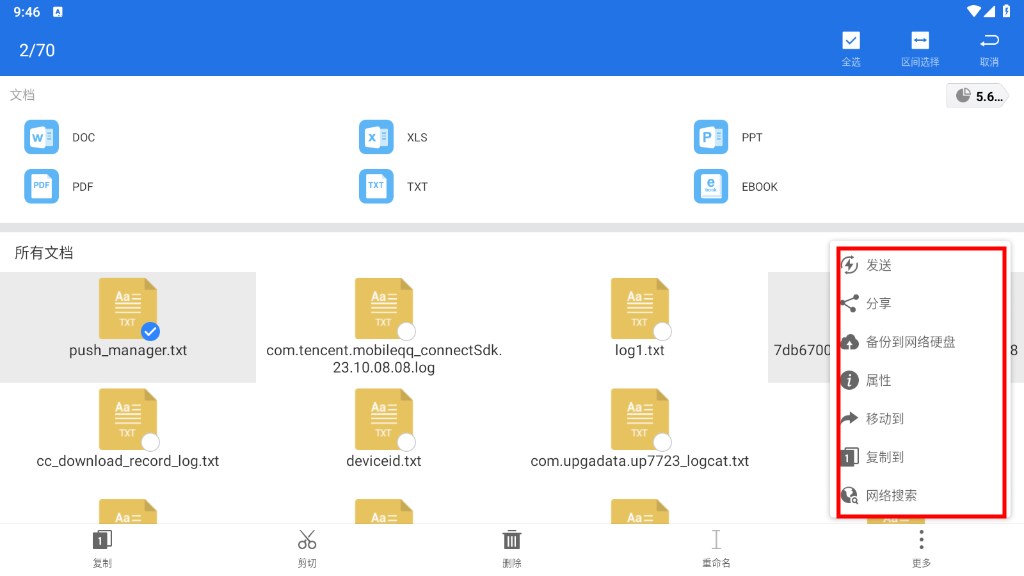 选中文件之后,就可以点击下方工具栏中的复制/剪切等功能了。