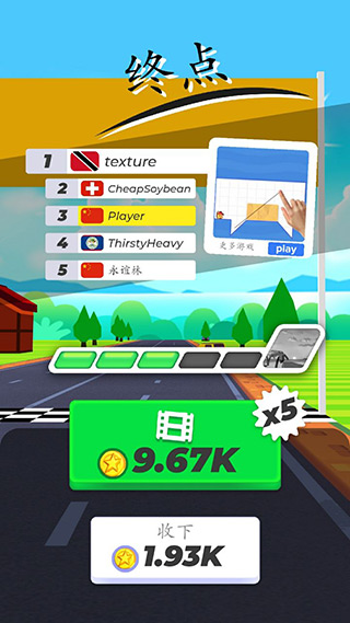 1、游戏操作简单,游戏规则就是没有任何规则,你需要做的就是把道路上的车辆撞飞然后到达终点。