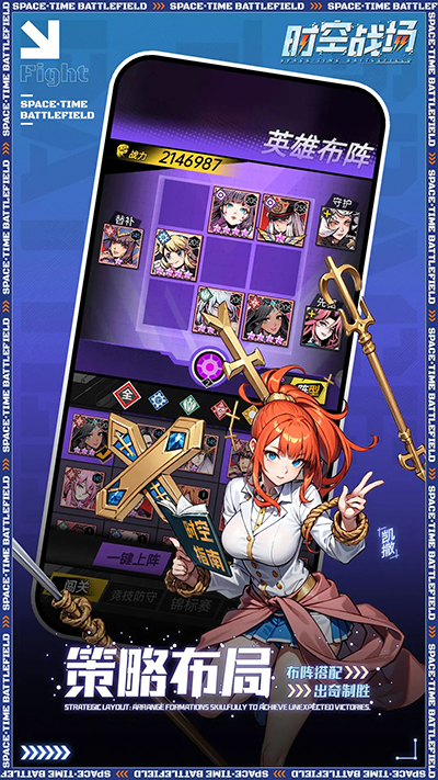 3D高清游戏场景画面,带我们畅玩异时空世界,精彩的战斗玩法,在时空战场(放置挂机)中,玩家将扮演主角,邀请各赋不同属性,技能的角色加入战斗,获得游戏胜利
