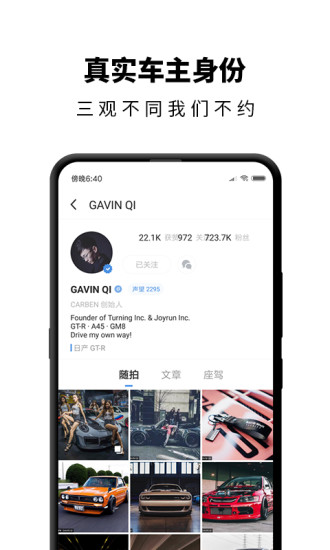 5、来自中国、日本、欧洲、北美、澳洲、东南亚等地的全球华人精英车主聚集于此,分享他们的玩车用车生活,在这里可以看到高质量的玩车经验分享,从日系JDM,到德系小钢炮,再到美系肌肉车,又或者意大利超跑,不同类型的车主在这里展示他们对汽车文化的理解