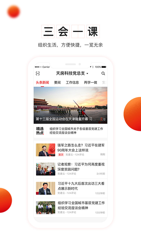 平台拥有在线学习,即时通讯,党建助手,三会一课,等功能服务,可以帮助更好的党建服务,需要的同志欢迎前来下载使用