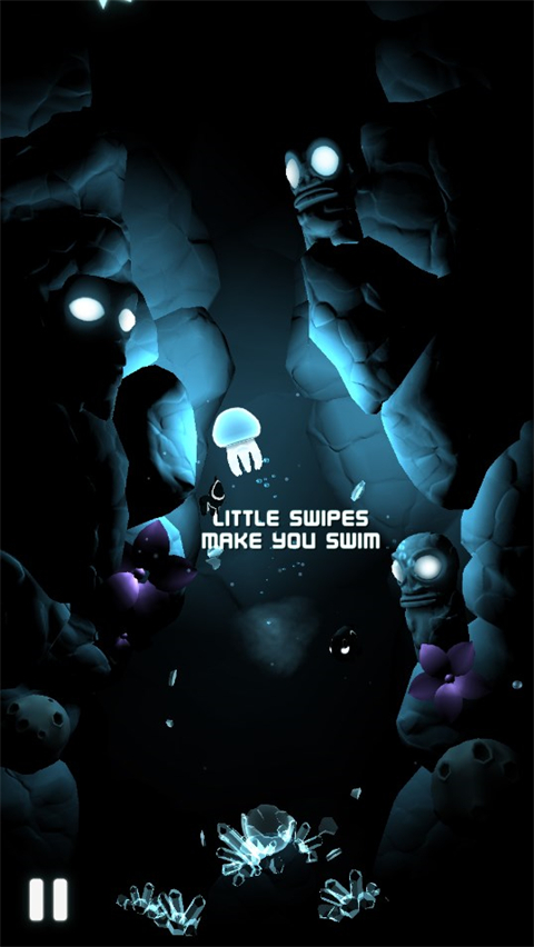 滑动屏幕,水母将会向由起点到终点的方向游动一次.