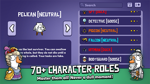 3、可选择角色,包括鸵鸟,刺客,加拿大鹅,食鸟鸭,呆呆鸟,通灵等等等等