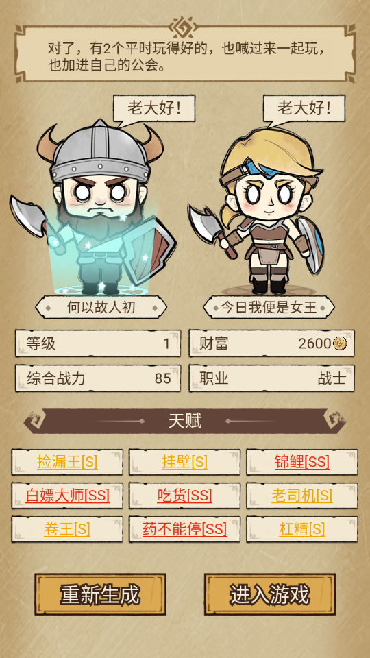 2、接下来,招募更多的勇者加入公会。再通过勇者购买食物、药剂,学技能,打装备,组建勇者小队下副本等等,提升综合战力,成为SSS级公会吧