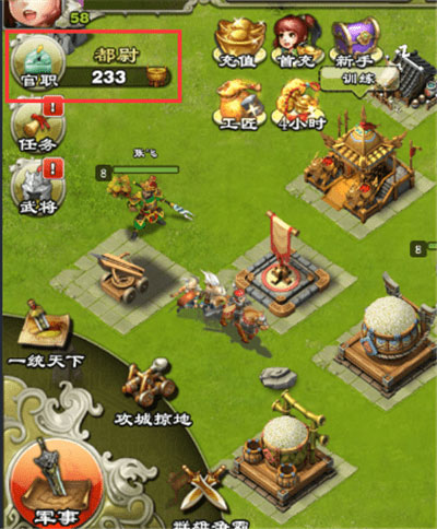 武官官职,主要通过攻城略地这个玩法来提升,当玩家的战功达到一定数值,就会提升玩家的武官官职,武官官职的提升带来的是每次征战的俸禄的提升呢。