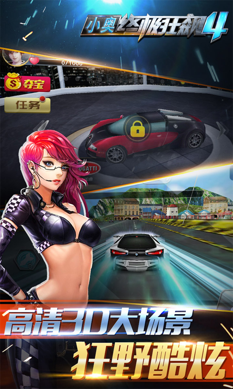 3、D画面清晰唯美,4D语音娇痴呆萌,氮气冲刺秒杀全场,100多个赛道更依据美国洛杉矶、法国巴黎小镇、雪原山麓等逼真实现,剧情错综复杂激情热血!勇敢踏上F1、达喀尔等全球赛事站,布加迪威龙会助你成为2014最强赛车手