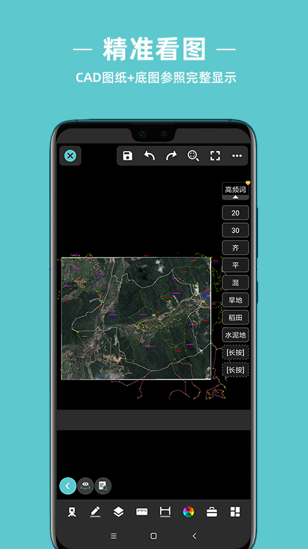 带来全新的无纸化作业,在手机上面就能操作,非常方便,你可以进行权属调查,查询信息,一键插入图纸,能够随意看图,有着完整的CAD图纸显示,在线编辑,进行测量标注,复杂的地块都能精准测量