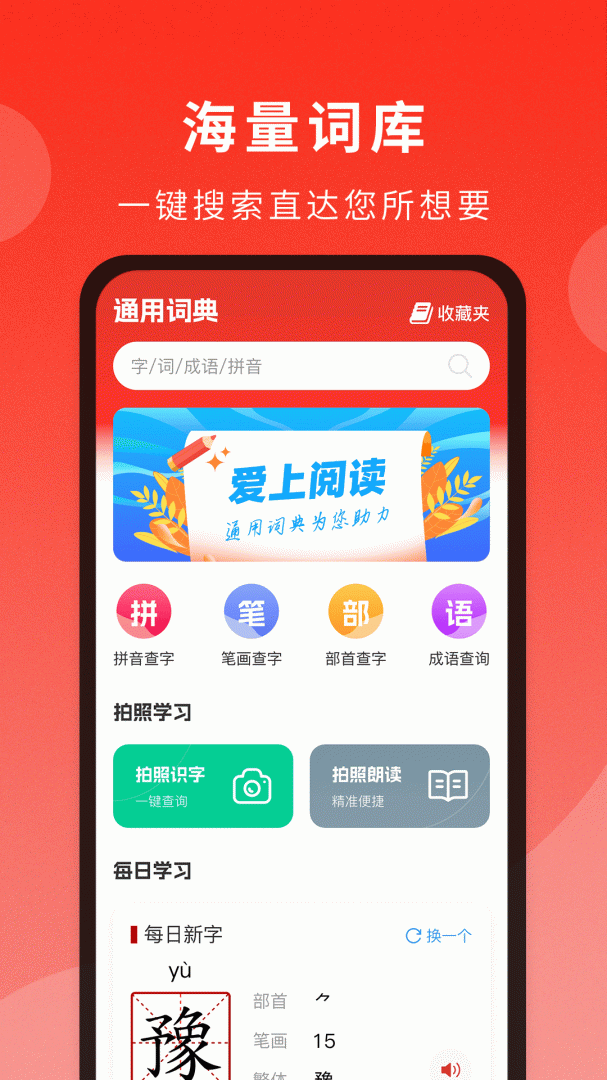 3、支持拍照扫描识别查询汉字和朗读汉字,真人发音,迅速学习读音