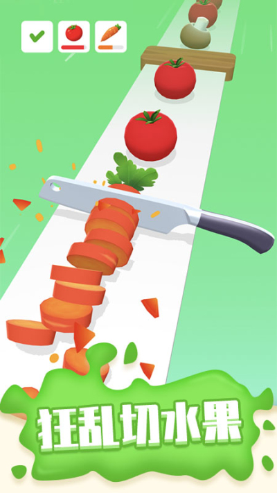 狂乱切水果有点类似于我们以前玩的切水果,游戏的玩法也是非常的简单,不过这款是要玩家最亲爱案板上进行切水果,和正常的切菜一样,玩家需要将案板上的水果全部切碎,非常的考验你的手速,你需要在最短的时间切碎所有的水果