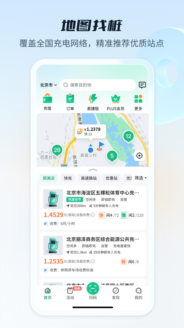 快速充电,再也不用为行驶途中电量耗尽而苦恼。充电桩状态实时更新,支持多种支付方式,方便快捷,让您体验绿色的出行生活