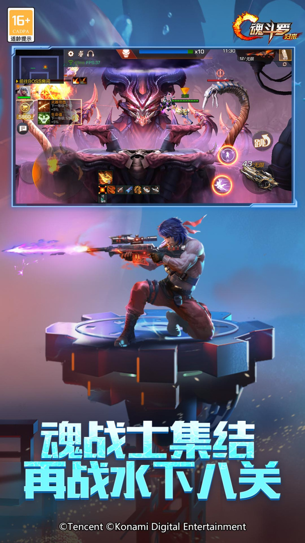 《魂斗罗:归来》是一款由腾讯推出的全新动作射击游戏,这款游戏以曾经经典游戏《魂斗罗》作为原型打造,并以非常精致的画面为玩家们呈现而出,同时还融入了诸多趣味性的玩法以及内容,相信这款游戏一定能够为玩家们带来无限的欢乐!