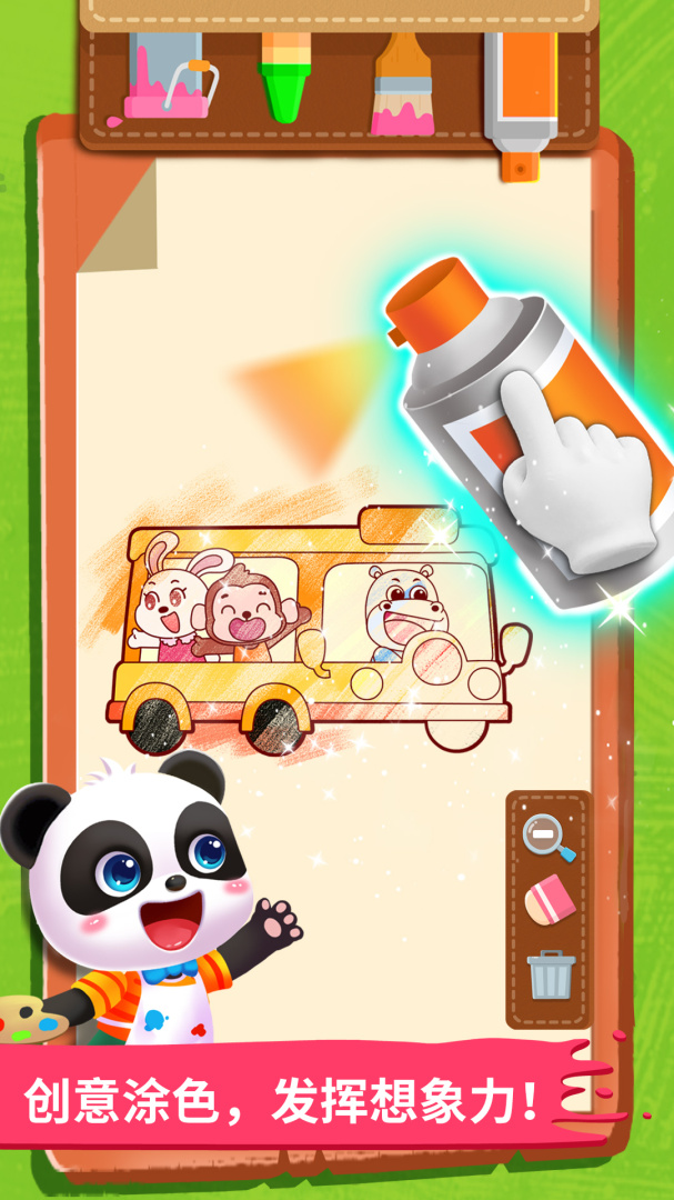 本软件可以帮助用户发挥自己的想象力,给各种事物涂上自己喜欢的颜色,放大孩子的天性,有利于孩子的成长